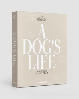 Découvrez l'album photo « A dog's life» ! Un album élégant conçu pour préserver et sublimer vos souvenirs. Doté d'une couverture en tissu beige et d'un texte blanc délicat, il est parfait pour exposer fièrement vos moments précieux. Idéal pour décorer votre intérieur tout en racontant votre histoire. Retrouvez nos autres modèles d'album ici !