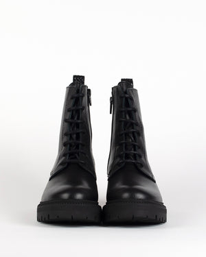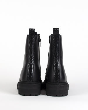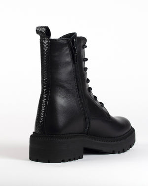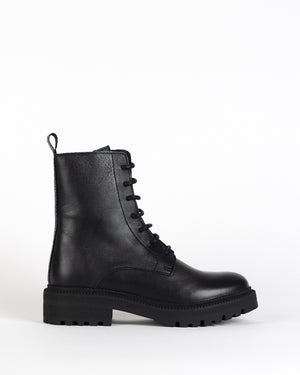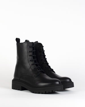 Ces rangers /cuir noir / finition soignée / cuir lisse / brut et raffiné / Les lacets / allure minimaliste et puissante