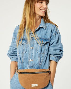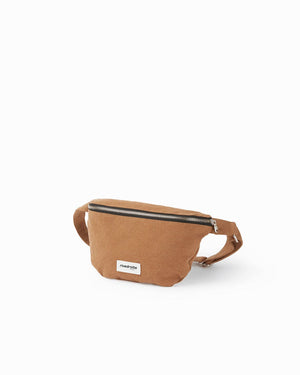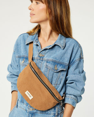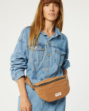 sac banane custine camel / forme arrondie et pratique / grand compartiment principal / anse ajustable pour un porté épaule ou taille