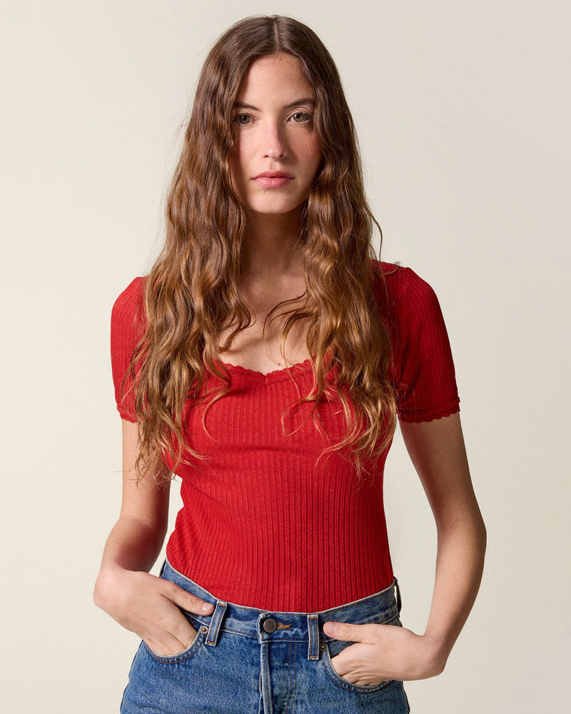 Rouje est une marque française de mode fondée par Jeanne Damas, incarnant un style parisien chic et intemporel. Spécialisée dans les vêtements féminins, Rouje propose des pièces élégantes aux coupes vintage et aux matières raffinées, inspirées de l’esthétique rétro et du charme effortless des Parisiennes. La marque est reconnue pour ses robes fluides, ses vestes structurées et ses iconiques rouges à lèvres, alliant modernité et nostalgie. Avec une approche éthique et responsable, Rouje séduit une clientèle en quête d’authenticité et de féminité.