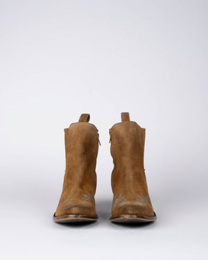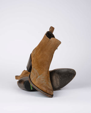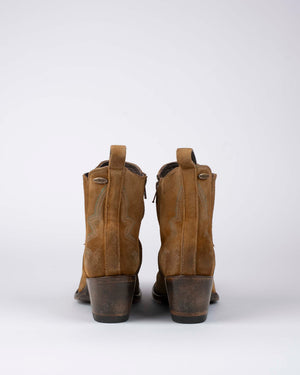 Sntiags en cuir suédé camel / Broderies cowboy élégantes / Look western tout en douceur / Teinte chaude & naturelle / Finition vintage travaillée / Détails soignés & caractère affirmé