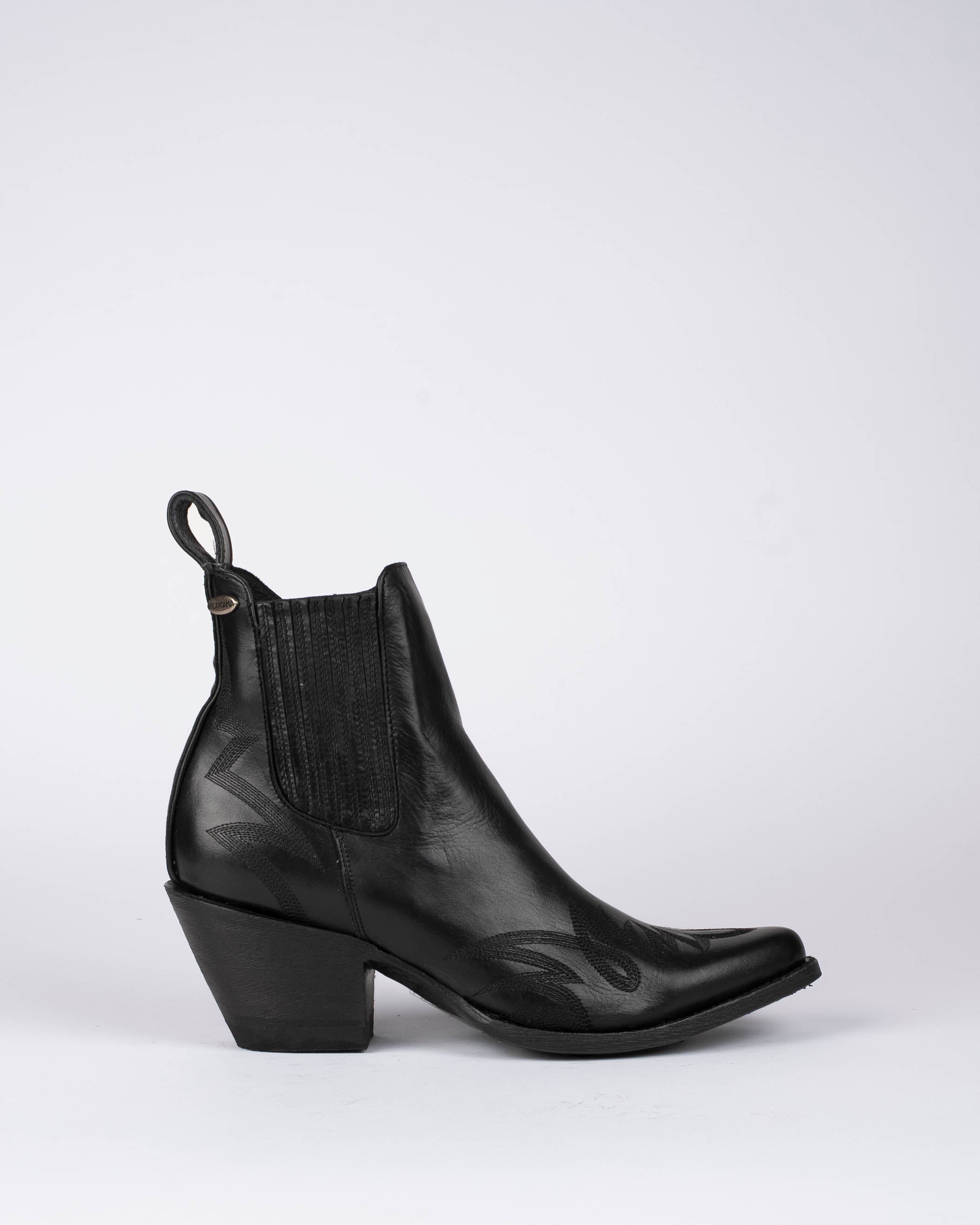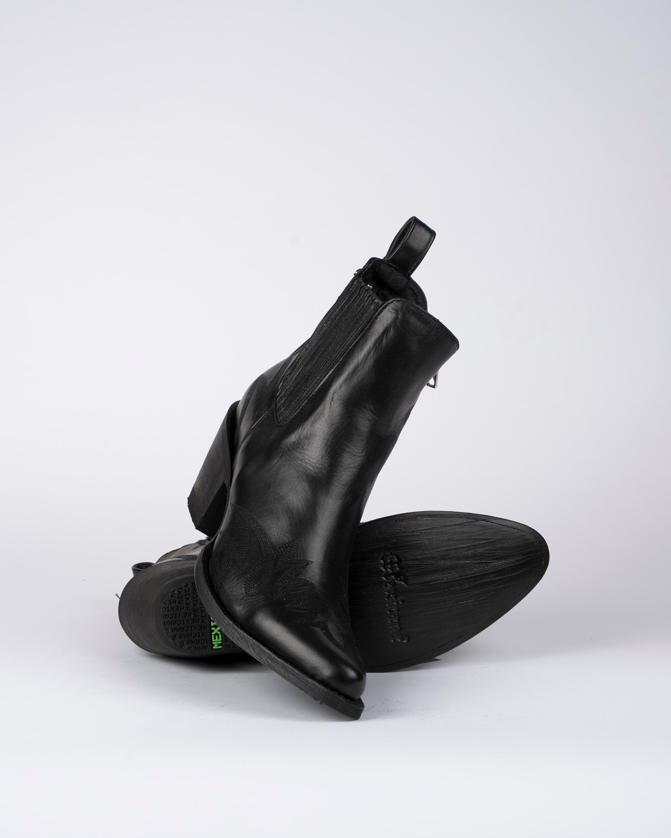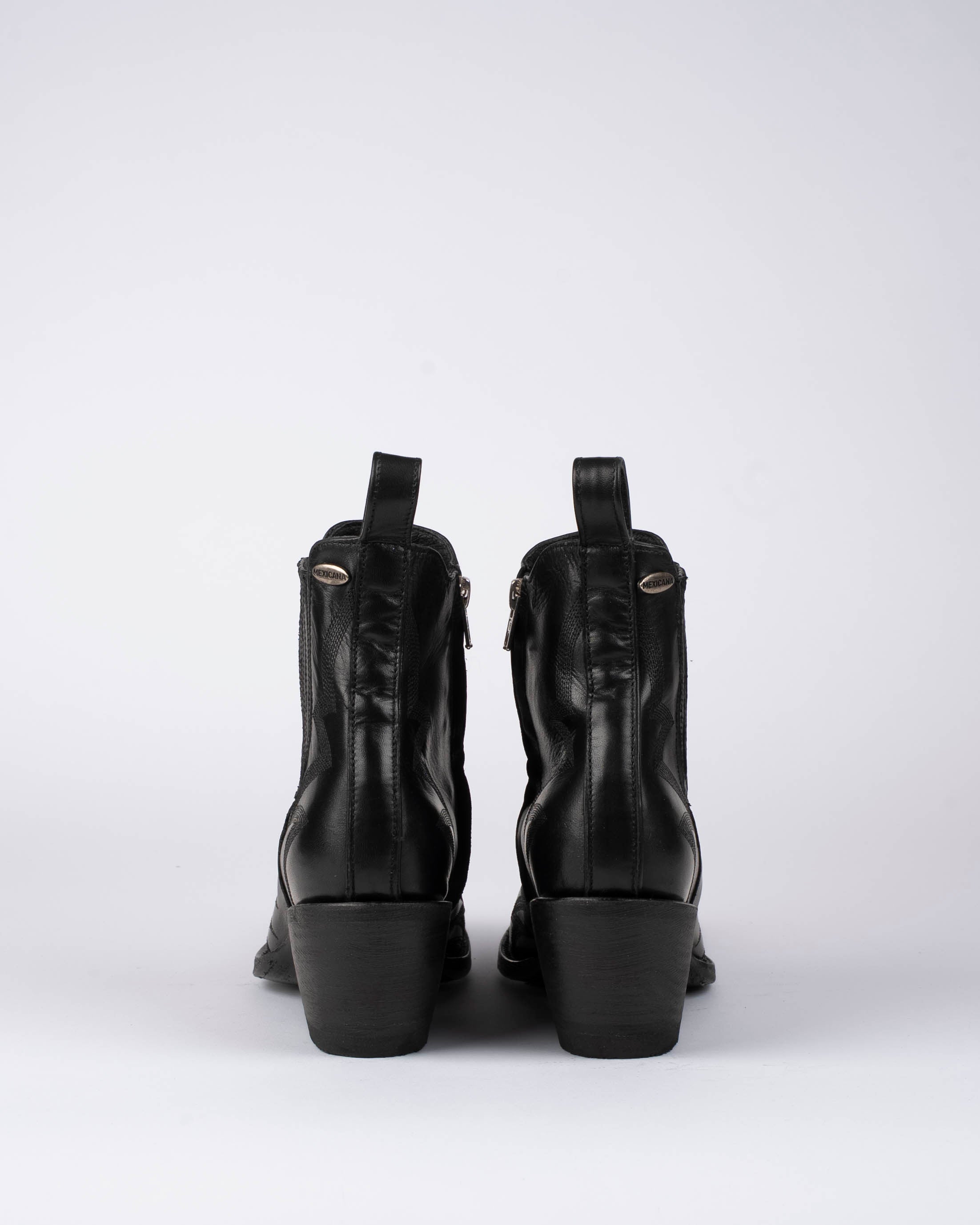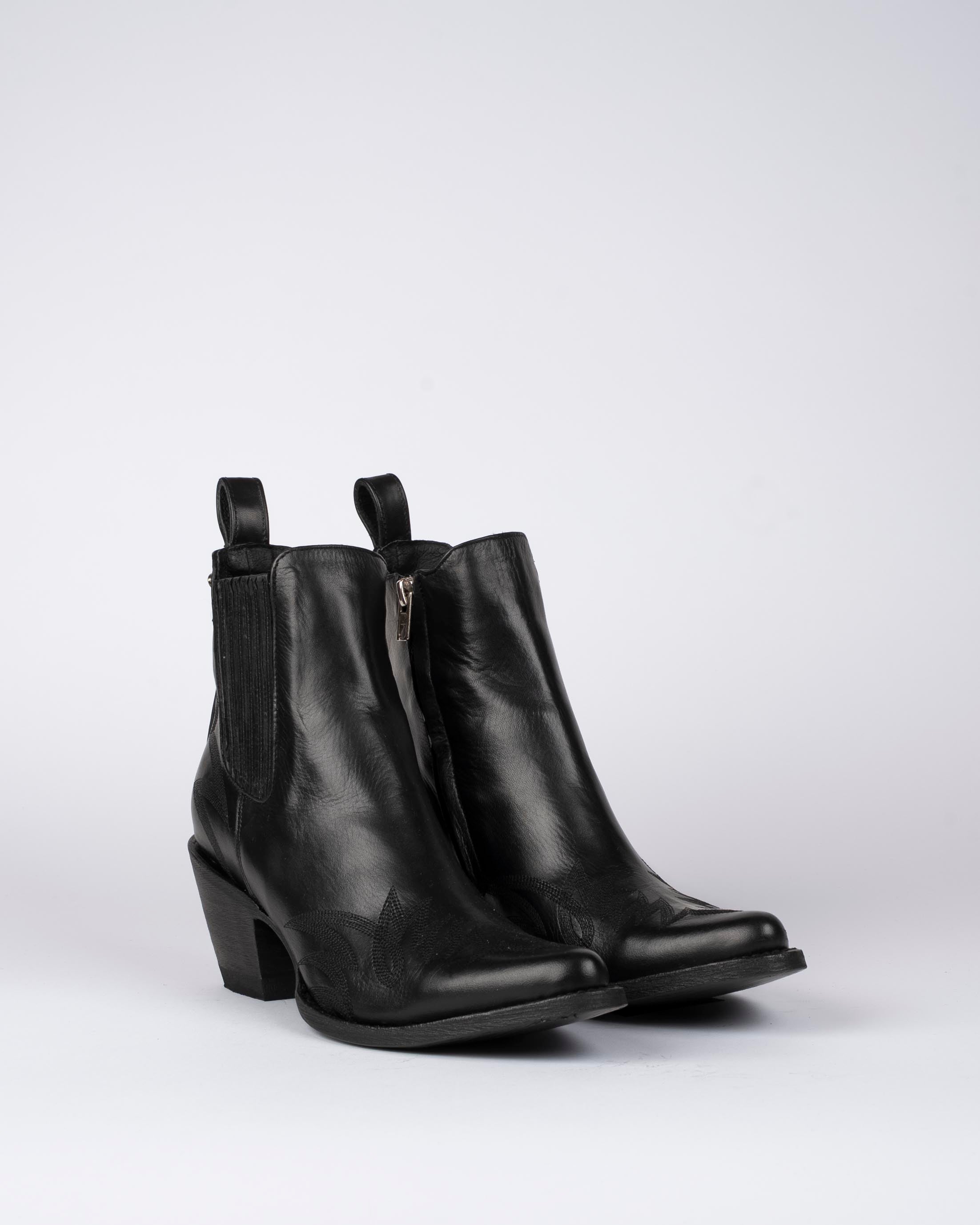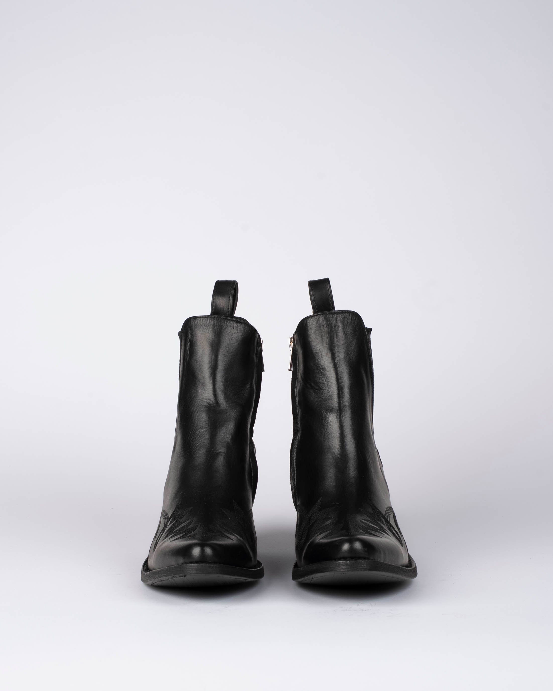 Tiags noires en cuir / Broderies façon cowboy / Détails ciselés & authentiques / Esprit western chic / Silhouette élancée et affirmée