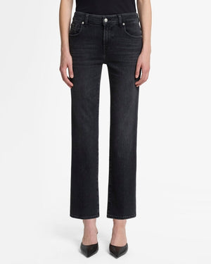 Coupe droite 7/8ème aux chevilles / Denim noir délavé tendance / Style épuré et moderne / Confort stretch pour un porté facile