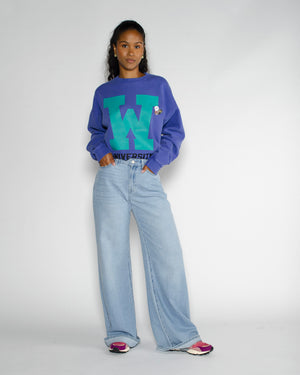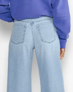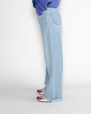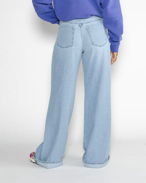 Coupe large & légèrement évasée / Denim bleu clair délavé / Style rétro et décontracté
