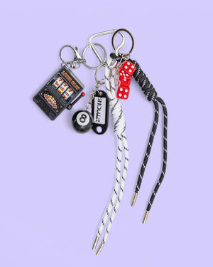 On adore ce bag charm rouge et noir signé Shouïa, qui nous plonge direct à Las Vegas avec sa mini machine à sous vintage et son chiffre 8 porte-bonheur. Un accessoire audacieux et ludique pour les joueuses dans l’âme…