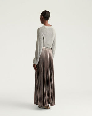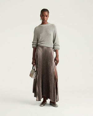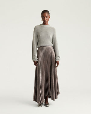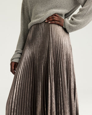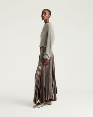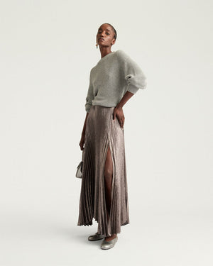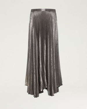 coupe régulière / longue plissé en tissu fluide laminé / ceinture à la taille / fente asymétrique