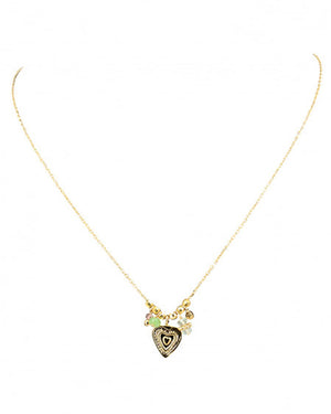 Un collier chaine plaqué or 3 microns de 42 cm de la marque Sophie Deschamps. Habillé d'un coeur martelé en plaqué or de 12 mm, et pampilles en pierres fines : Tourmaline, péridot et pierre de lune ! Une vraie petite merveille. Ce collier mélange originalité, tendance et couleurs. Notre collier Alicia est une valeur-sûre.