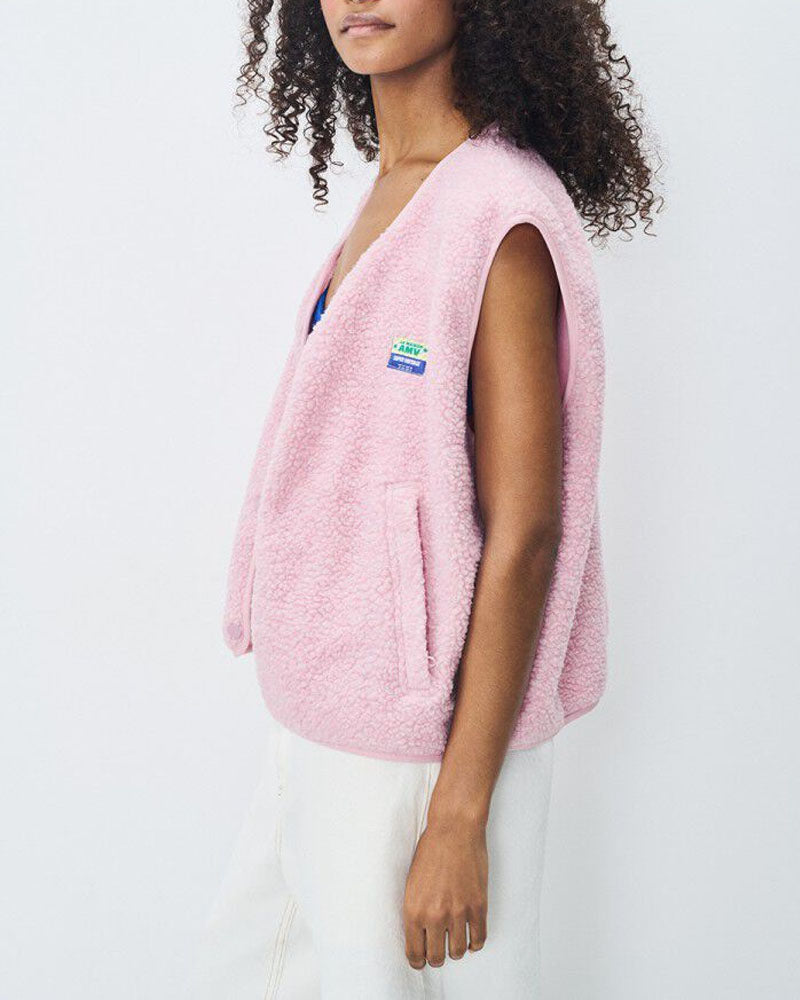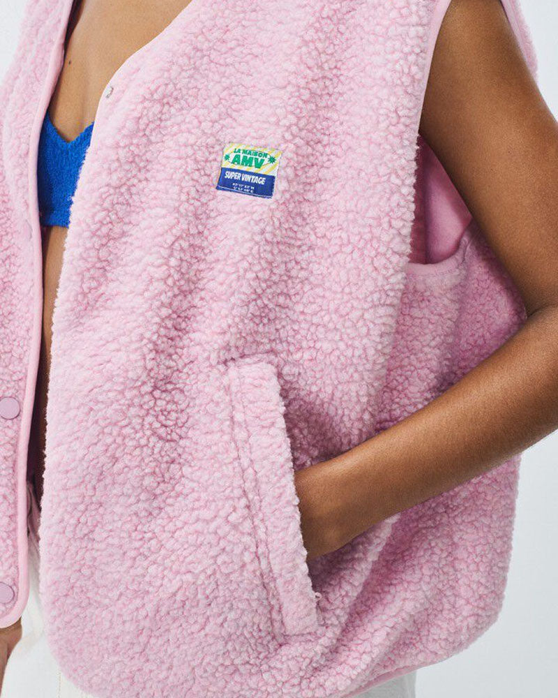 La veste polaire sans manches Hoktown pour femme de la marque American Vintage Women. On adore cette veste polaire à la texture moumoute rose clair. Une pièce stylée à porter sans modération en layering avec style ou pour se réchauffer lors de vos soirées estivales.