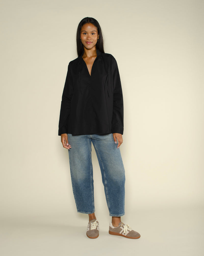 Blouse en coton / Manches longues / rayures blanches et grises / Blouse confortable / basique classe