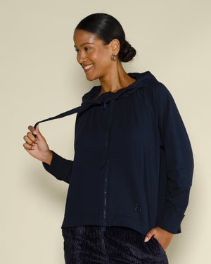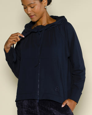 Coupe décontractée en molleton / capuche froncée / deux poches à l’avant / logo brodé discret en bas du sweat