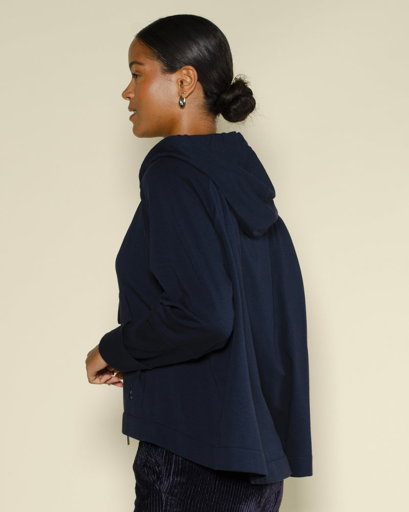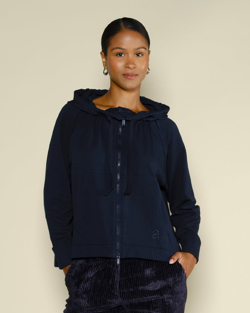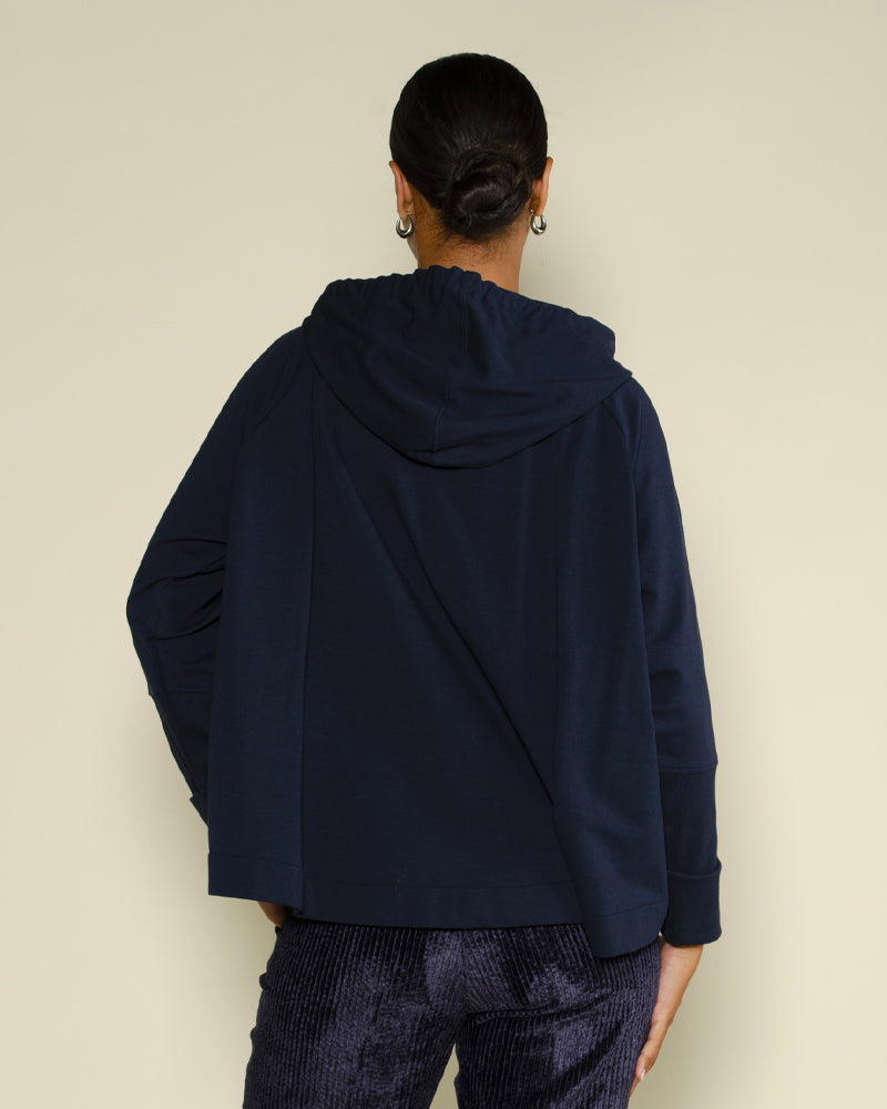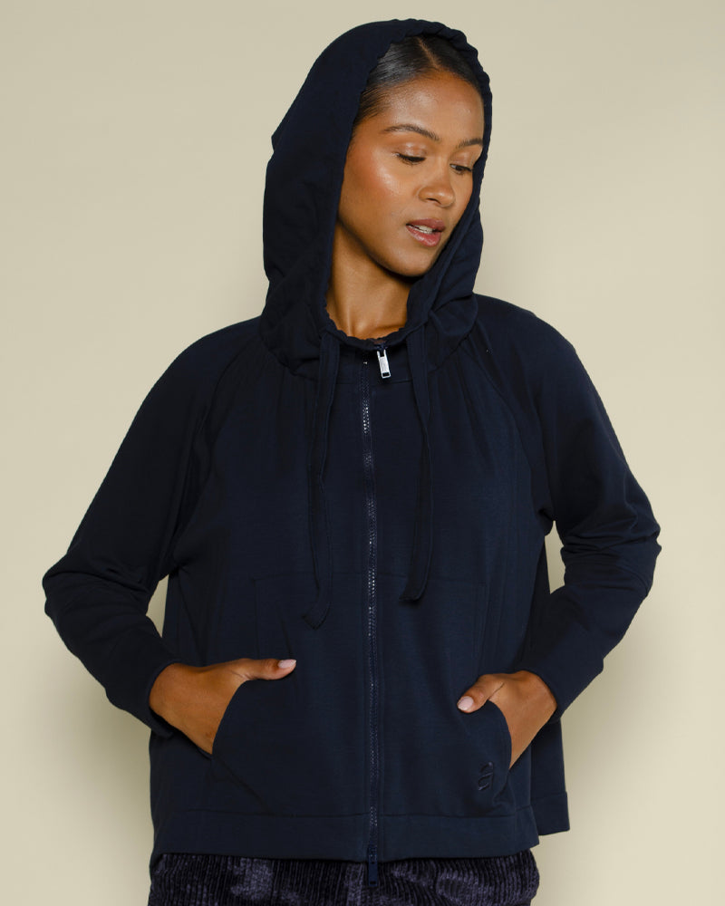 Coupe décontractée en molleton / capuche froncée / deux poches à l’avant /  logo brodé discret en bas du sweat