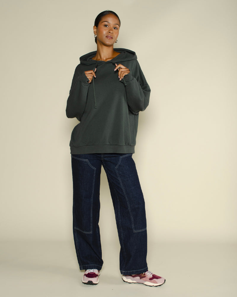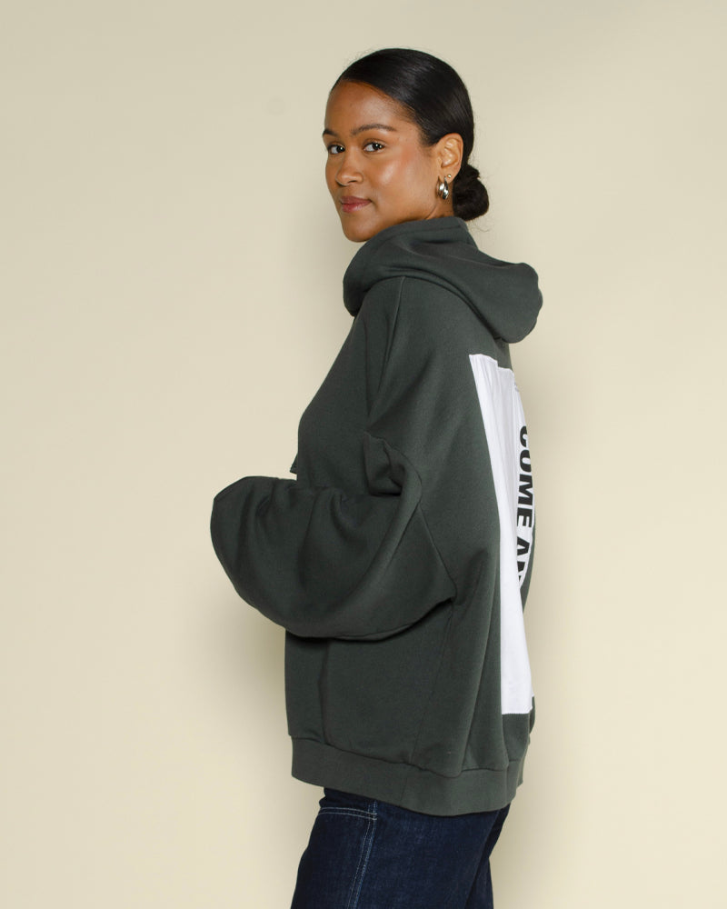 Coupe décontractée oversize / Capuche avec cordon ajustable / Graphisme arty contrastant dans le dos / Poche kangourou pratique à l’avant / Molleton doux et chaud pour un confort optimal