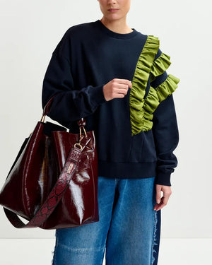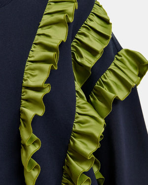 Sweatshirt coton mélangé / Coupe décontractée / Volants asymétriques devant et épaules / Bords côtelés col, poignets et ourlet