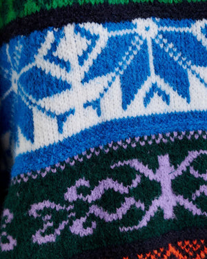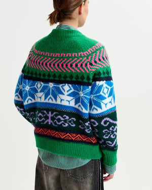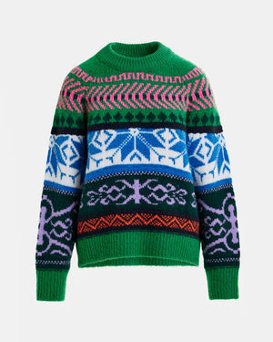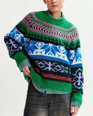 Pull jacquard en maille mélangée / Coupe boxy décontractée / Bords côtelés au col, poignets et ourlet / Motif multicolore