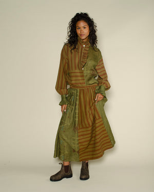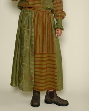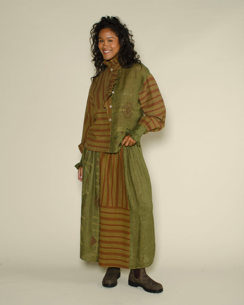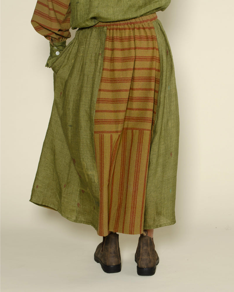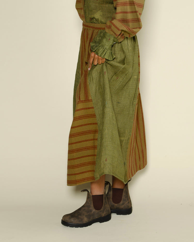 jupe alma longue / taille élastique / motifs couleur brique / rayures / Confortable