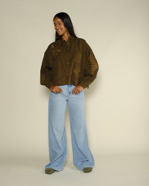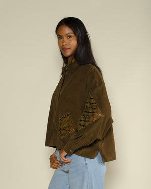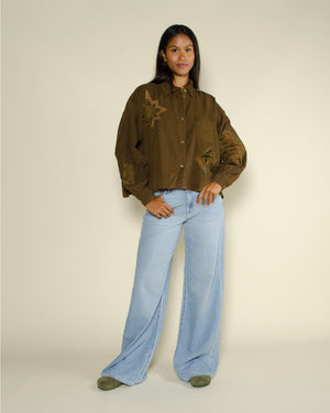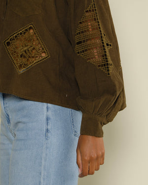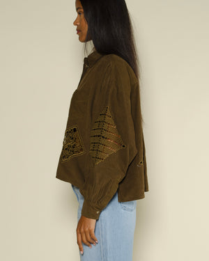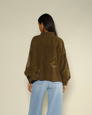 Chemise V de Vinster en corduroy / Coupe droite décontractée / Col chemise classique / Fermeture boutonnée / Velours côtelé chaud et texturé / Broderies géométriques artisanales