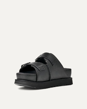 On adore la mule Goldenstar Hi d’UGG pour sa plateforme qui allonge la silhouette sans sacrifier le confort. Sa tige matelassée en cuir et ses lanières ajustables enveloppent le pied avec douceur et maintien. Montée sur une base en EVA issu de la canne à sucre, elle est aussi légère qu’ultraconfortable. Parfaite pour booster un look de jour comme de soirée avec une touche stylée et assumée !
