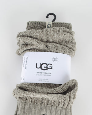 Ces chaussettes UGG en maille douce couleur kaki sont le parfait allié pour des pieds bien au chaud tout en restant stylée. Leur texture moelleuse et leur design confortable les rendent idéales à glisser dans vos bottes ou à porter à la maison pour un moment cocooning. Un must-have pour affronter les journées fraîches avec style et confort !
