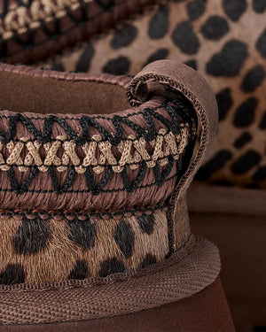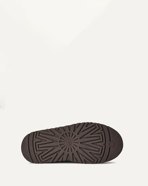 Doublure de 10 mm d’épaisseur en peau de mouton / Semelle extérieure en EVA issu de la canne à sucre / Plateforme légère / Structure incurvée