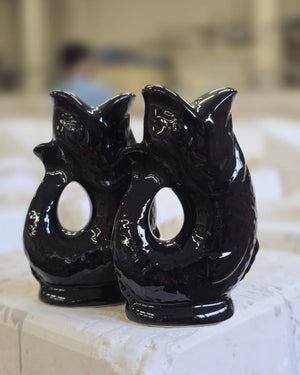 Salière et poivrière poisson / Noir brillant / Fabriquée en Grande-Bretagne / faites à la main / certaines peuvent présenter des irrégularités.