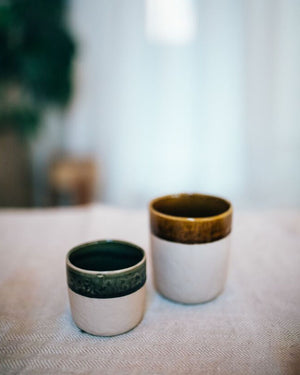 Petite tasse à café en grès de la marque Pomax. On adore le côté bicolore et bimatière de cette tasse à café trop mignonne ! Son style épuré lui donne un côté chic et élégant.