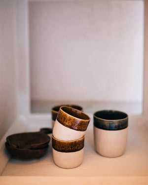 Grande tasse à café en grès de la marque Pomax. On adore le côté bicolore et bimatière de cette tasse à café trop mignonne ! Son style épuré lui donne un côté chic et élégant.