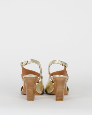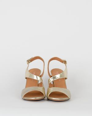 Une paire de sandales à talons de la marque La Bottega Di Lisa dorée pour un look rock ! La bride asymétrique sur le dessus de la chaussure apporte une réelle touche d'originalité à vos tenues. La marque a décidé d'associer élégance et confort avec un cuir de couleur or souple et une bride réglable à la cheville. On craque pour le look décalé qu'elles apportent.