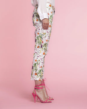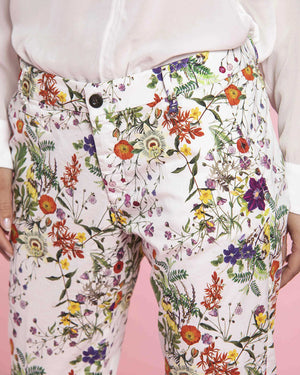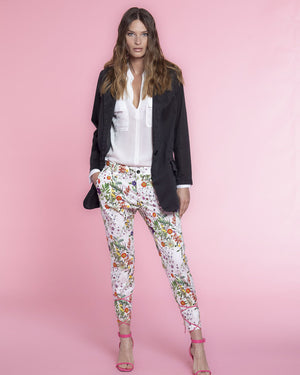 Le pantalon de la marque Mason's est à motif floral avec une coupe slim avec des rivets M façon Mason's.