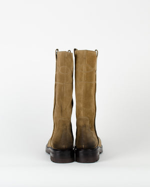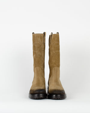 Une paire de bottes montantes de couleur beige, complètement tendance pour l'automne. Portez la paire avec une robe blanche ou même colorée avec un trench et hop, le tour est joué !