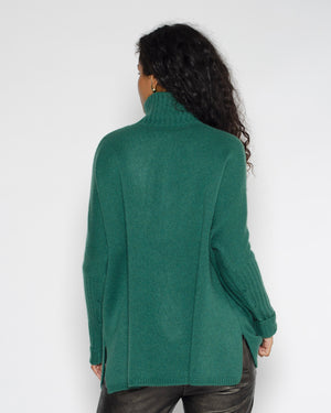 On adore ce pull pour femme 100% cachemire, col roulé et coupe ample, avec des manches côtelées et des fentes latérales pour un style élégant et confortable. Parfait avec un jean et des bottines pour un look chic et décontracté. Le cachemire permet de rendre ce pull fin et très chaud, idéale à glisser sous un blazer cet automne !