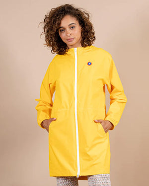 Amelot est notre veste imperméable phare. Conçue en polyester recyclé, son tissu est imperméable et respirant. Modèle mixte et citadin prêt à vous accompagner dans toutes vos aventures, il possède des poches zippées pour garder vos objets de valeur à l’abri. Ses coutures sont thermocollées et ses fermetures éclairs sont imperméables pour vous garantir une protection de qualité contre la pluie.