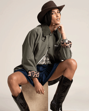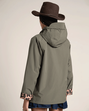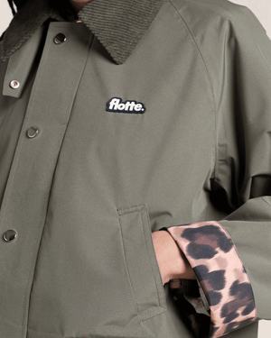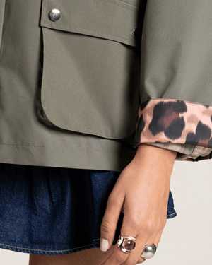 Veste courte / Capuche / Poches plaquées sur l'avant / Se ferme avec des pressions / Détails léopard à l'intérieur