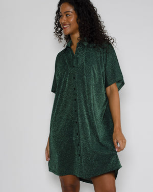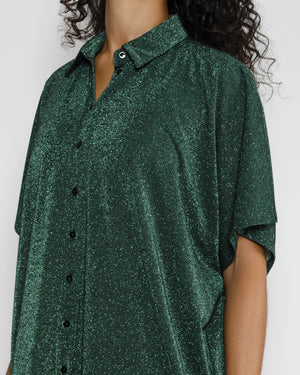 Une robe chemise verte à paillettes pour femme de la marque Momoni. On adore cette robe chemise pour femme avec sa matière agréable à porter et surtout légère pour cet été ! Retrouvez la en couleur or ici.