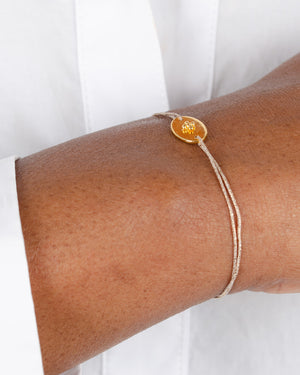 Bracelet Croisette sur fil lurex, oval et croix gravée. Ajustable par un ou deux nœuds coulissants. Craquez pour ce bracelet seul ou accompagné, il sera facile à assortir !