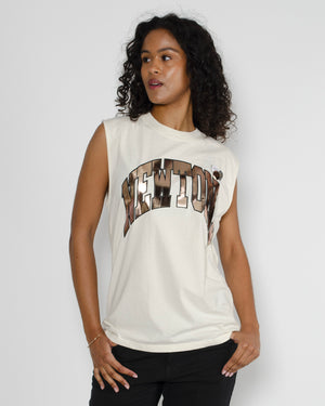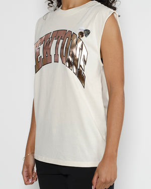 Ce débardeur écru style biker de la marque Newtone est parfait pour un look edgy, rock et vintage. Avec ses deux badges emblématiques et l'imprimé du nom de la marque sur la poitrine, il est idéal à porter en été. Il s'associe parfaitement à un short long pour un look décontracté et stylé.
