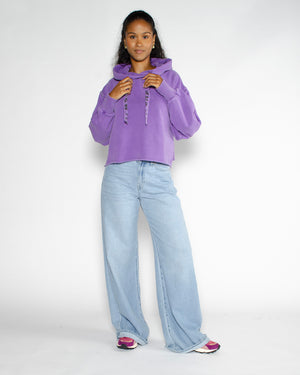 sweat violet / Badges sur le côté / Capuche / écriture sur les cordons