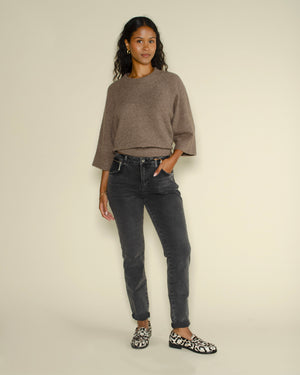 Denim noir brossé de qualité / Coupe slim flatteuse / Silhouette élancée / Tissu confortable et extensible / Liberté de mouvement / Style élégant et intemporel
