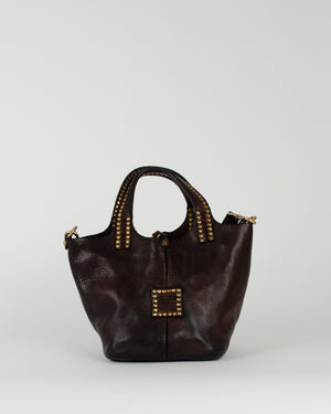 Coup de cœur de la saison, on est fan du mini sac cabas de la marque Campomaggi. La forme est moderne et le format est parfait pour mettre tout ce dont vous avez besoin. Un mini sac aussi pratique que stylé avec ses rivets couleur or.