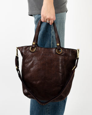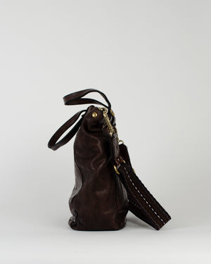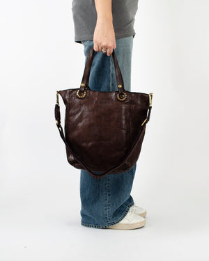 C'est l'incontournable sac cabas de la marque Campomaggi. Il a une bonne profondeur, des hanses assez grandes et des détails signatures de la marque discrets et intemporels. Un design minimaliste et rock qui conviendra avec tous vos looks.
