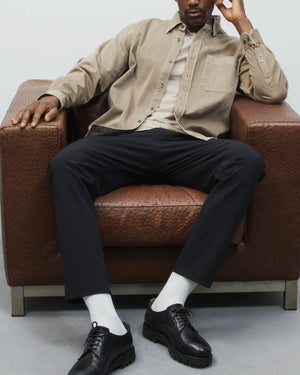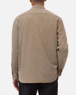 Coupe décontractée / Poche poitrine / Boutons en nacre / Poignets boutonnés / Teinte et lavée après confection (garment-dye)