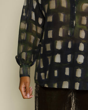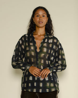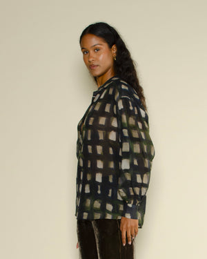 Chemise Calbiza Diega / Coupe fluide / Coton-soie / Carreaux tons verts / Manches longues / Toucher doux / Style décontracté-chic / Parfaite avec jean