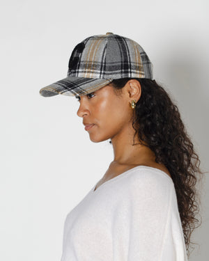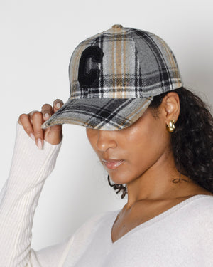 Casquette en tissu à carreaux gris, beige et noir, Pop Philosophy. Parfaite pour ajouter une touche chic et décontractée à votre tenue. Le design en laine plaid, très élégant, est rehaussé d’un grand « C » en relief à l’avant, offrant une allure sport tout en restant raffinée. Idéal pour un look casual chic.