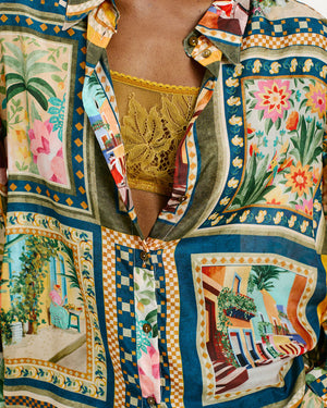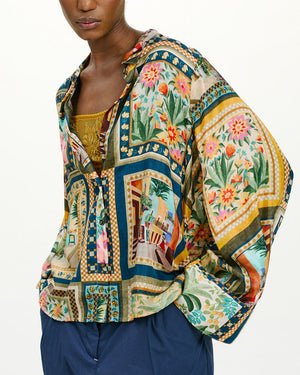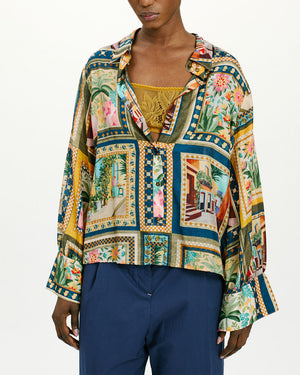 Une chemise imprimé coloré pour femme de la marque Momoni. On adore cette chemise pour femme parfaite pour cette été avec sa matière satiné très agréable !