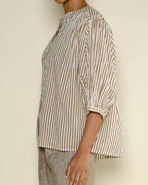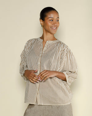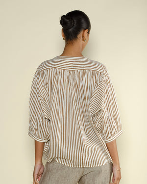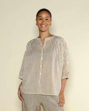 Une chemise Celesto de couleur camel à rayures et de la marque Diega. Une chemise Celesto fluide et confortable grâce à sa composition 100% coton. On adore le motif de la chemise et ses manches trois quart, idéale pour une tenue bohème chic !