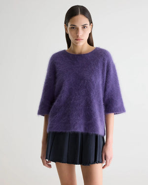 Coupe décontractée / col rond / manches mi-longues / mélange d'angora