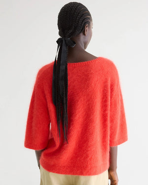 Coupe décontractée / col rond / manches mi-longues / mélange d'angora