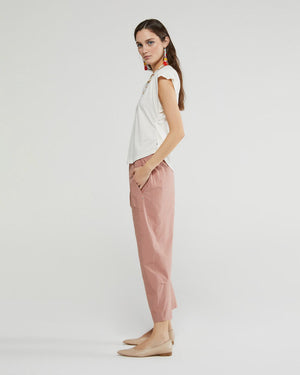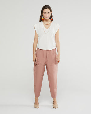 Pantalon à la cheville pour femme en popeline de pur coton avec un élastique à la taille. Facile à assortir et confortable, il apportera de la douceur dans tous vos looks.