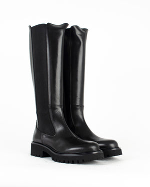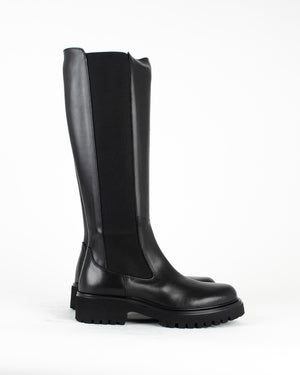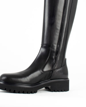 Des bottes hautes noires en cuir pour femme de la marque Julie Dee. On adore cette paire de bottes hautes en cuir noir, elles sont confortables et féminines !