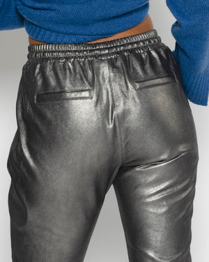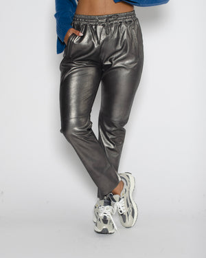 Un pantalon en cuir gris anthracite signé Oakwood. C'est une pièce phare coup de cœur. Il change des jeans et des pantalons fluides et donnera un coup de peps à vos tenues !