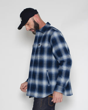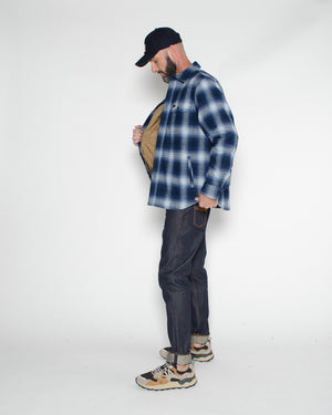 Une chemise à carreaux d'hiver de couleur navy de chez Nudie. Le rembourrage vous gardera bien au chaud pour cet hiver messieurs ! Notre mannequin Philippe porte du M et mesure 1m85.